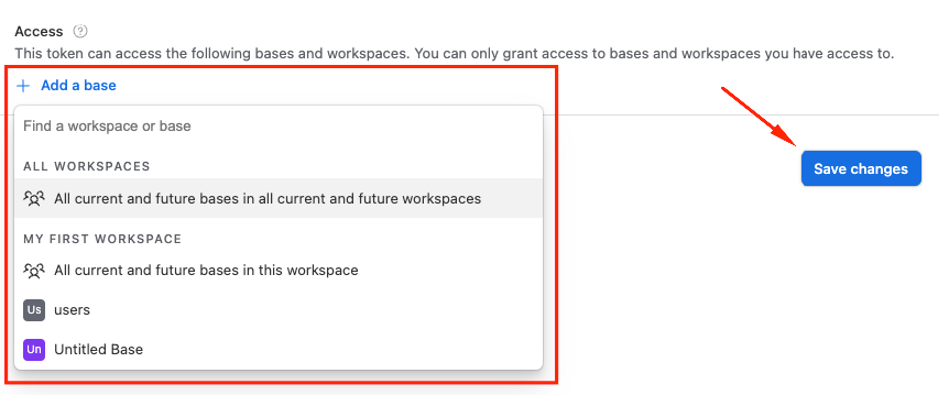 3. Select required bases or allow access to all available and press the Create Token button. Add Bases